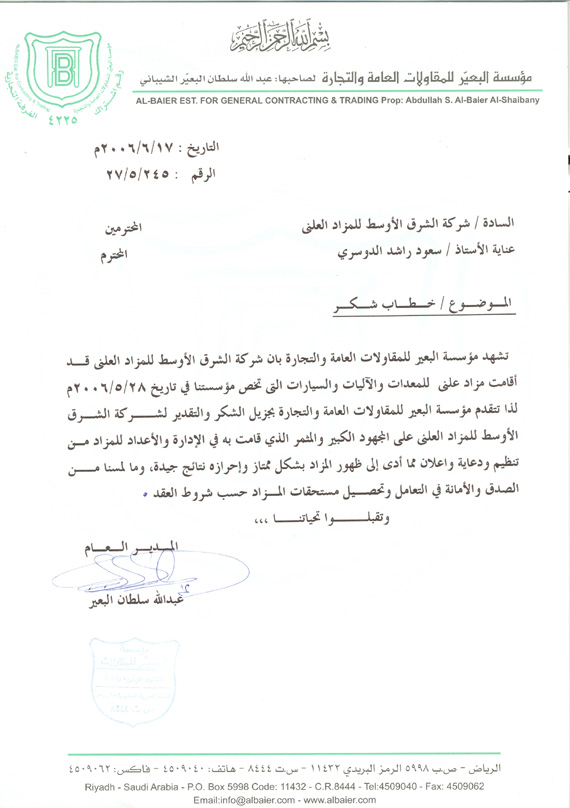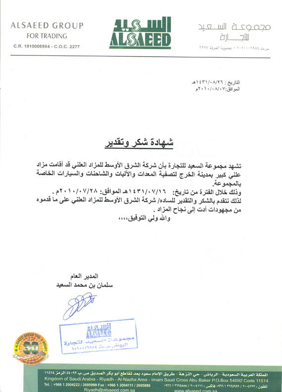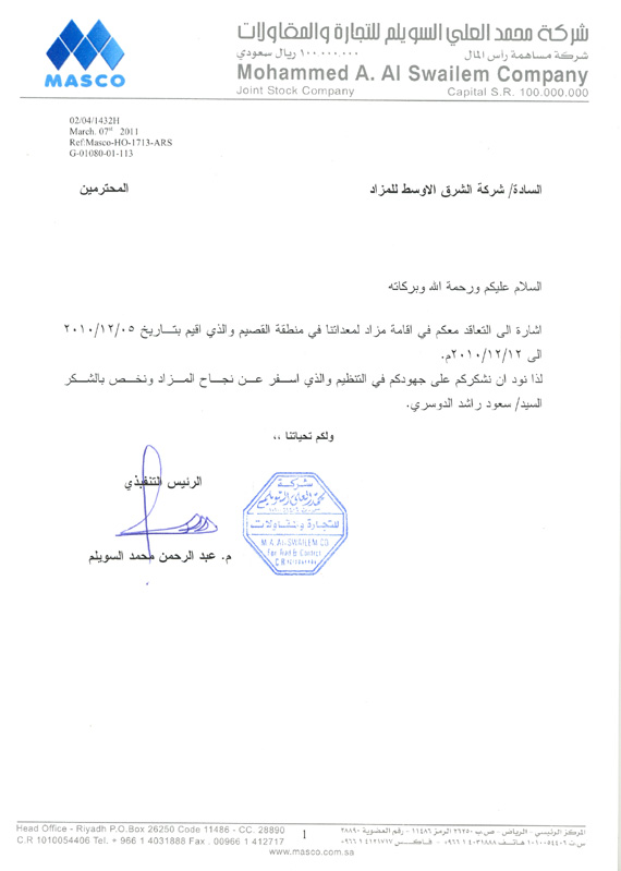 المزاد القادم مزاد شركة ابان المتقدمة للمقاولات احدى شركات مجموعة الكفاح القابضة ويليه مزاد شركة مبرد و مزاد شركة المراعي